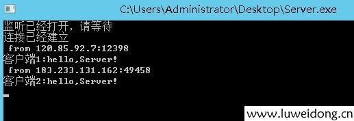 首先在拥有公网IP的服务器中启动Server.exe。接着在两个不同的网络中启动client.exe,如家里的PC和公司的PC上分别启动client.exe。