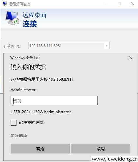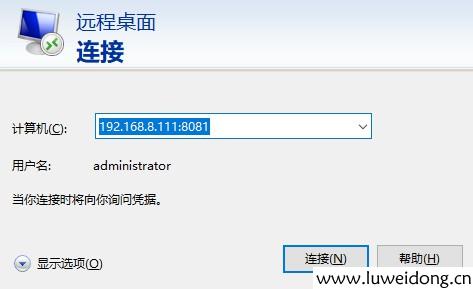 打开远程桌面,输入:192.168.8.111:8081,