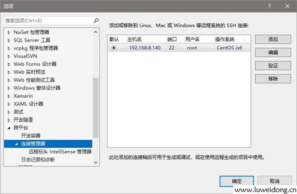 打开工具->选项,点击跨平台。添加远程主机。