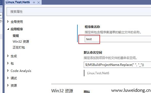 因项目名称太长,把程序集名称改为test。