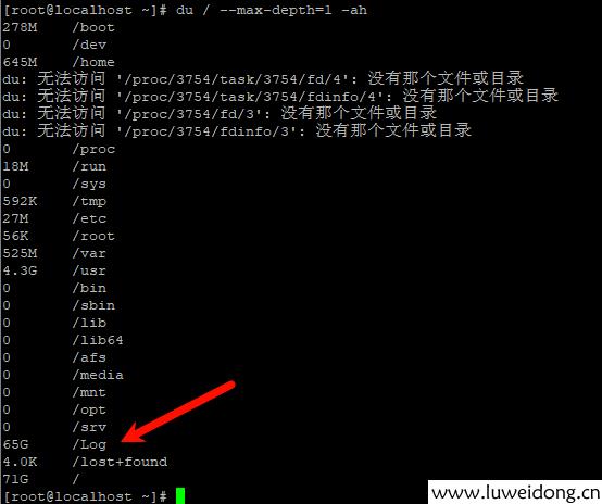 可知,根目录下存在Log目录,占用65G,通过winSCP直接删除该文件。