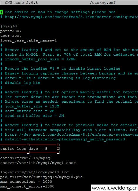 nano /etc/my.cnf