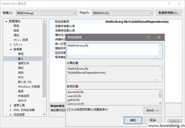 也可以用相对路径类似于:..\..\MathLibrary\MathLibrary