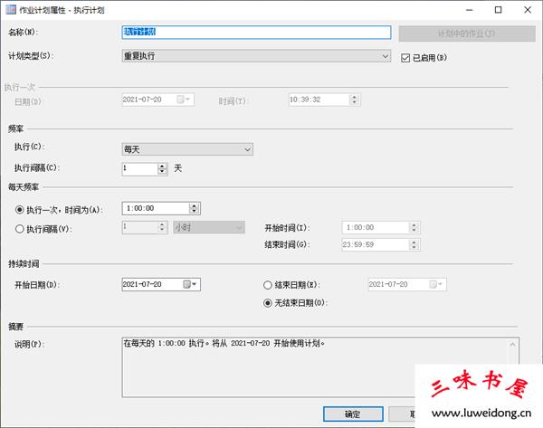5、点击选择页:计划-->新建,设定本作业何时定时执行
