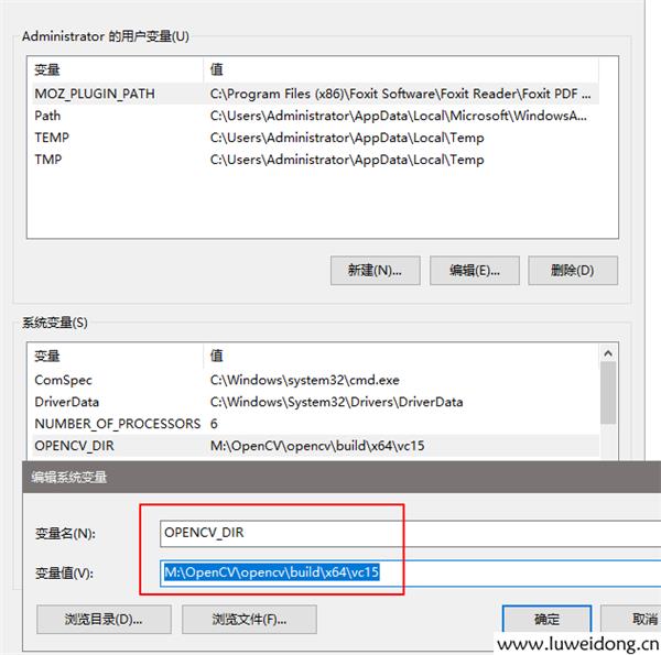 新增系统变量,OPENCV_DIR,值是:M:\OpenCV\opencv\build\x64\vc15