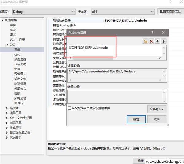 1)C/C++,常规,附加包含目录:$(OPENCV_DIR)\..\..\include