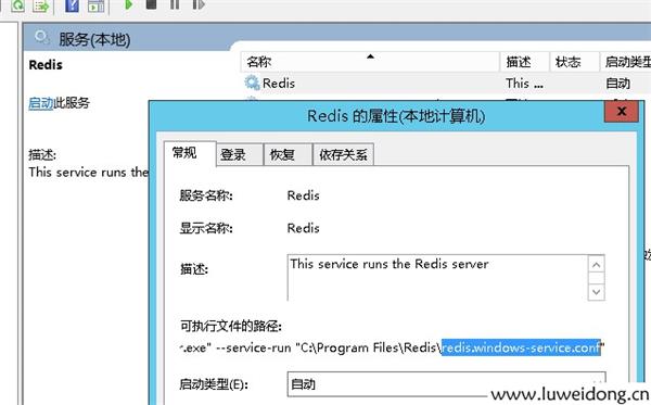 查看Redis服务,可知配置文件名为:redis.windows-service.conf