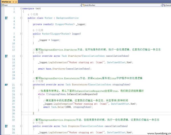//重写BackgroundService.ExecuteAsync方法,封装windows服务或linux守护程序中的处理逻辑